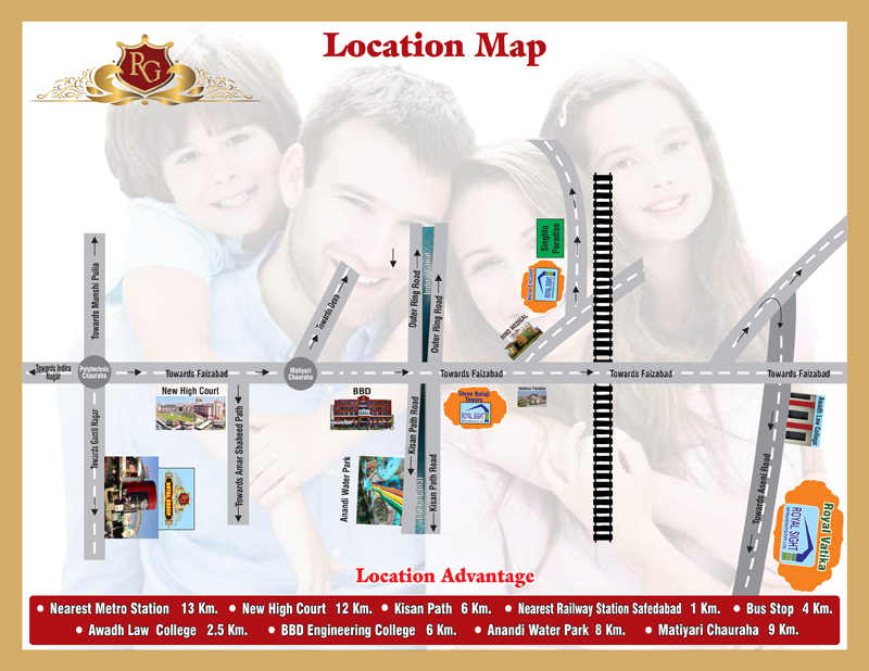 ROYAL VATIKA Situated At ASENI ROAD,NEAR AWADH LAW COLLEGE,FAIZABAD ROAD, LUCKNOW is a dream address for those who appreciate quality living, fine taste, refined lifestyle,Where you would love to live in & keep it all through life. We provide you with the privacy of your own residence, the lifestyle of a beauti destination, the security of a gated community and an advantage of having the elite of our society as neighbors.. Royal Group is an integrated township located at Prime Location of LUCKNOW. The township spread across more than 15 acres being developed in blocks, which includes Plots, Row Houses and commercial space along with Entrance Gate, Electricity, Drainage system, Shopping Centre etc.
